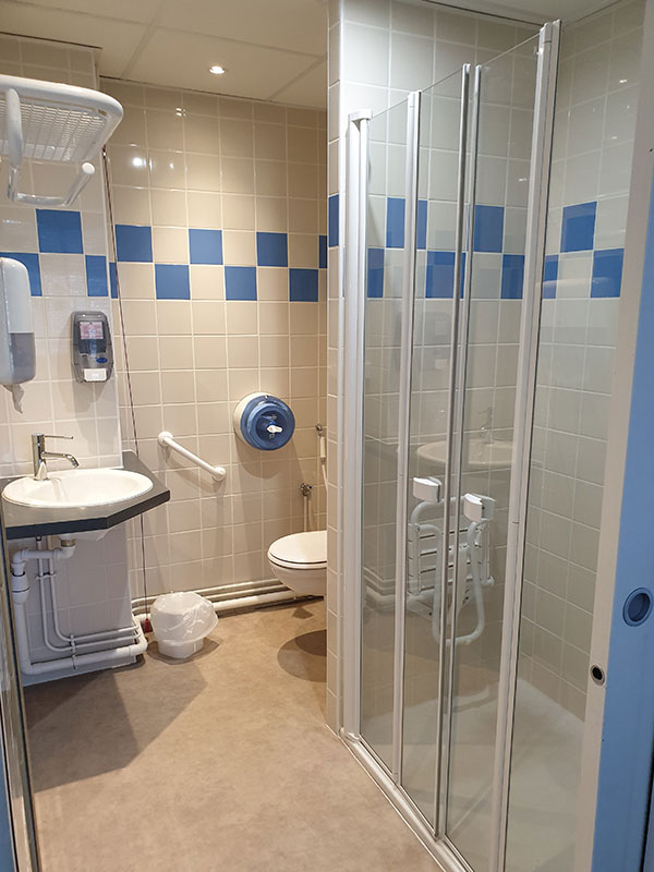 Quelques chambres ne disposent pas d’une douche individuelle. Une douche commune dans le service est mise à la disposition des patients pour permettre de réaliser leur toilette.